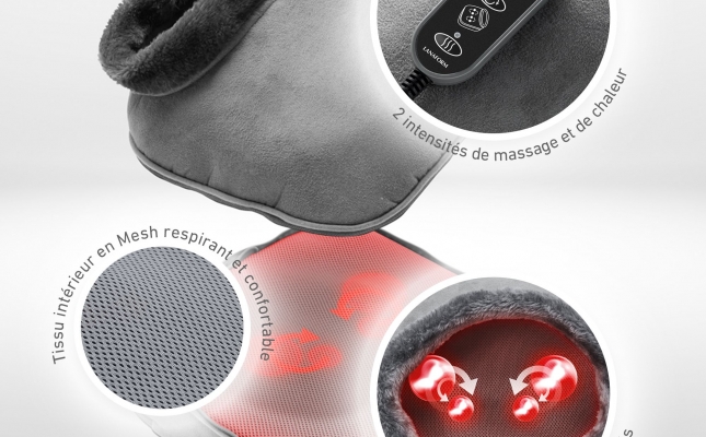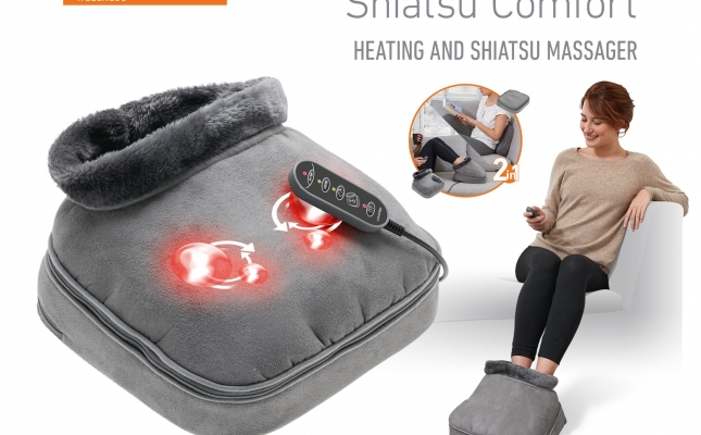Podkładka grzewcza i masująca 2 w 1 Shiatsu Comfort ma wszystko, czego potrzeba, aby zapewnić stopom komfort . Przede wszystkim zapewnia jeden z najbardziej relaksujących masaży ugniatających dzięki 2 x 2 głowicom masującym , które wykonują przyjemny ruch okrężny, którego kierunek i intensywność można kontrolować. Masaż ten wyłącza się automatycznie po 15 minutach, pozostawiając stopy zrelaksowane i ponownie rozgrzane .